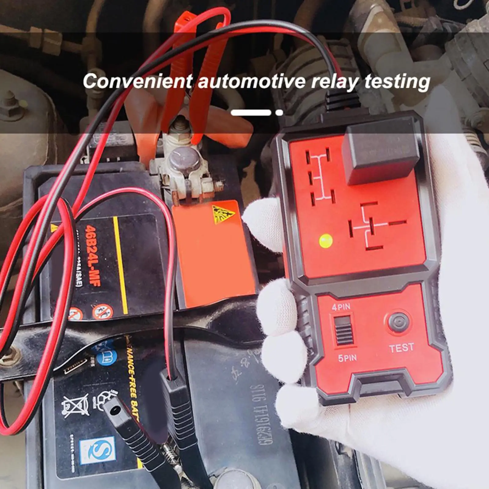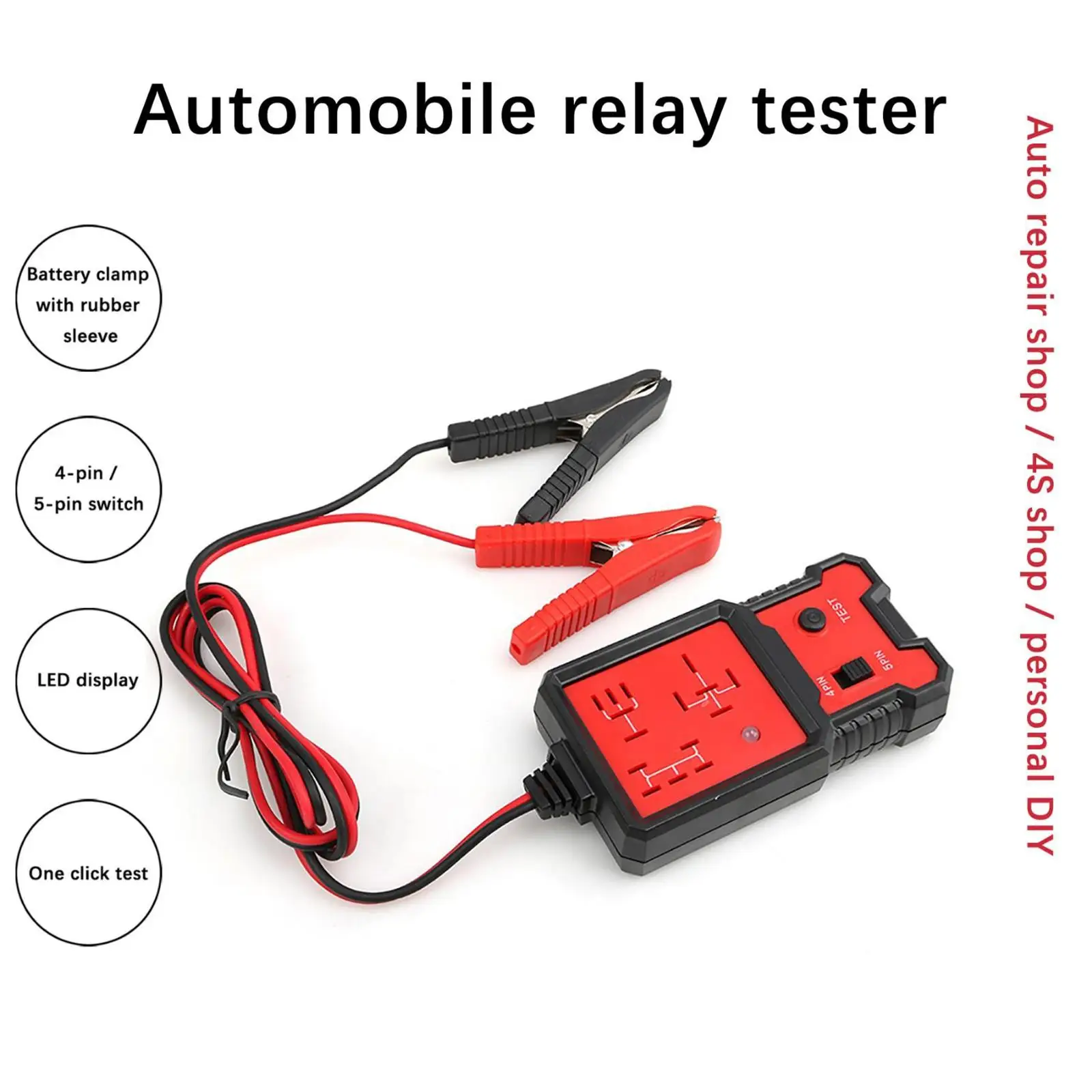 This is a test tool to quickly test automotive relays, allowing you to know the status of automotive relays. By connecting the car battery (11V-15V) to the relay coil, the tester can check the relay contact function normally. The tester observes the contact data, close time, relay inertia, etc. from each test stage. When the test passes, the green light is on, and when the test fails, the red light is on.