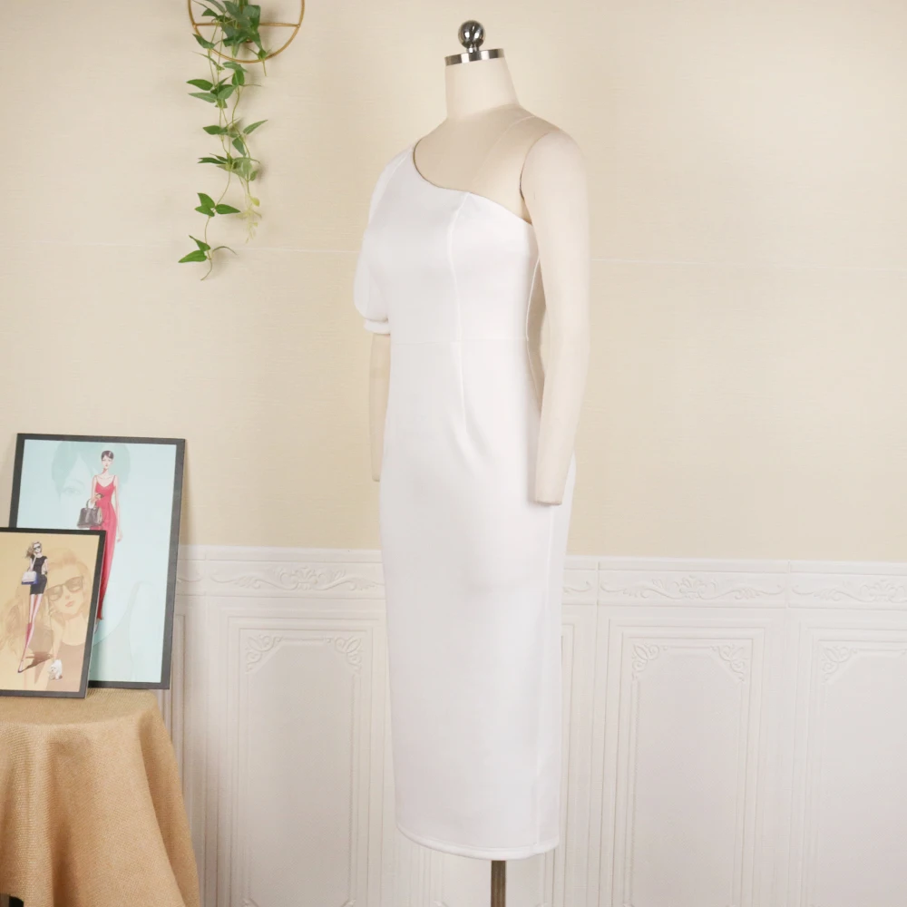 One Shoulder Bodycon Dresses Elegant Evening Party White Outfits